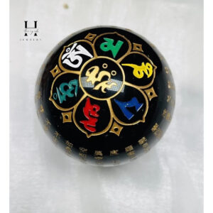 Quả cầu đá obsidan khắc chú đại bi 8 cm kèm đế gỗ HANMYNGHE
