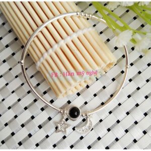 Vòng tay đá lam ngọc 6 mm bánh xe mix charm bạc HANMYNGHE