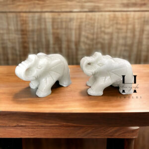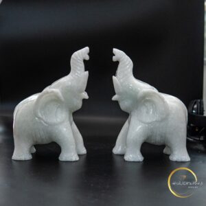 Cặp voi đá trắng non nước tự nhiên nguyên khối cao 20cm HANMYNGHE