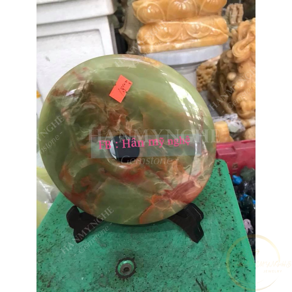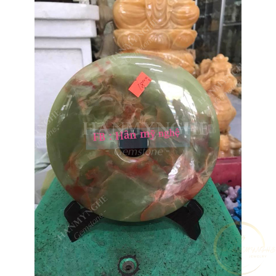 đồng điếu pakistan có vân huyết đường kính 16cm tặng kèm đế gỗ