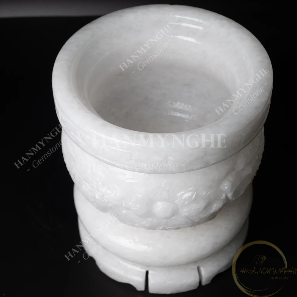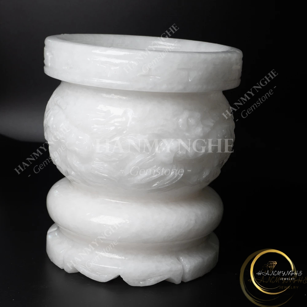 Lư hương chạm rồng đá trắng non nước tự nhiên nguyên khối HANMYNGHE