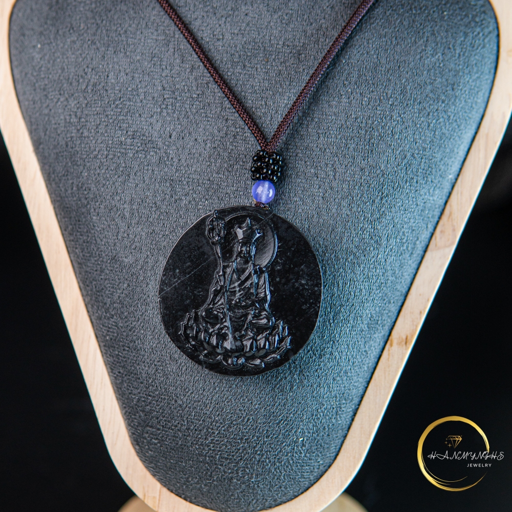 Mặt dây địa tạng ngồi đá ngọc onyz đen 5cm tặng kèm dây đeo HANMYNGHE