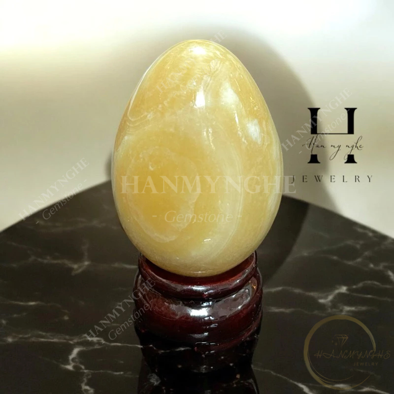 Quả trứng đá ngọc hoàng long cao 9 cm kèm đế gỗ HANMYNGHE