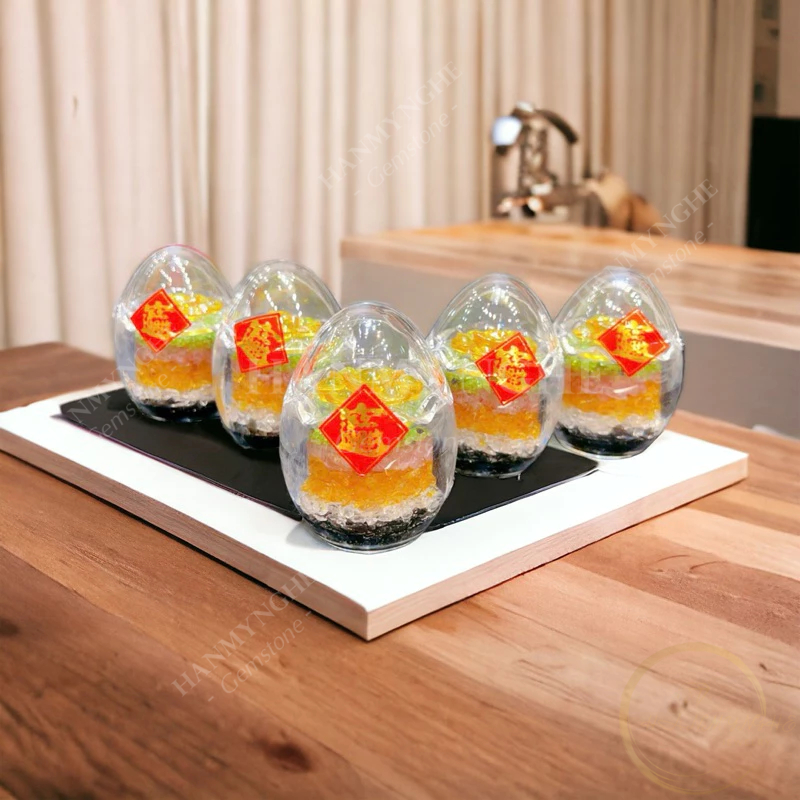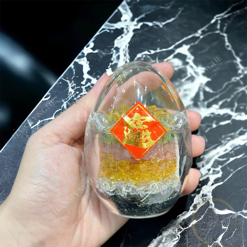 Quả trứng phong thuỷ đá thạch anh ngũ sắc 8 cm HANMYNGHE