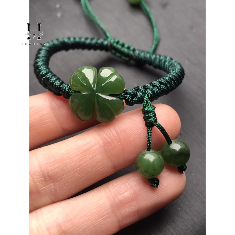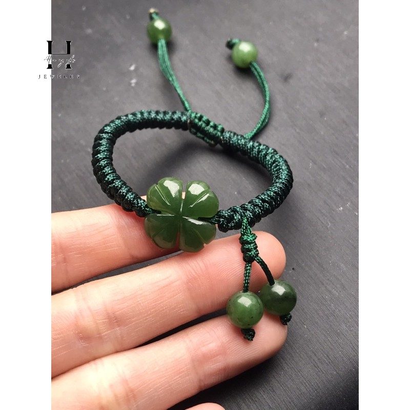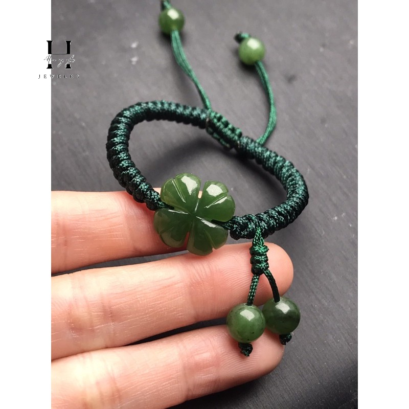 Vòng tay đá nephrite cỏ 4 lá HANMYNGHE