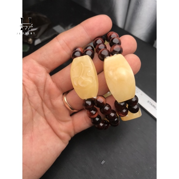 Vòng tay tam phúc tinh đá ngọc hoàng long tự nhiên HANMYNGHE